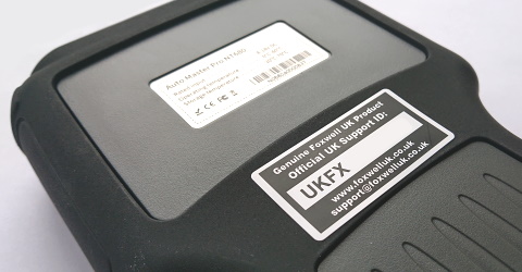All genuine Foxwell UK tools will have a Foxwell UK identifier label, featuring a unique support ID beginning "UKFX".